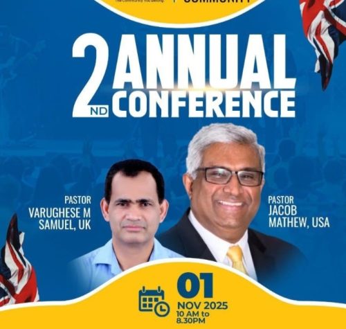 യു കെ: യുകെയിലെയും യൂറോപ്പിലെയും മലയാളി പെന്തെക്കൊസ്ത് സമൂഹത്തിന്റെ ആത്മീയ കൂട്ടായ്മയായ യൂറോപ്പ്യൻ മലയാളി പെന്തെക്കൊസ്തൽ കമ്മ്യൂണിറ്റിയുടെ (ഇ എം പി സി) ഏകദിന സമ്മേളനം നാളെ നവംബർ 1 ന് യു കെയിലെ വൂസ്റ്റർഷെയർ ഗ്രേറ്റ് മാൽവെർന് 15 അവേന്യൂ.